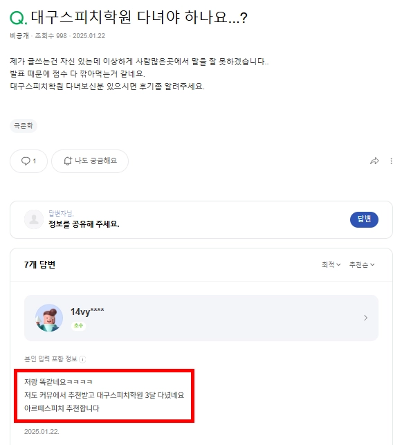 Q&A 형식의 콘텐츠를 상위 노출 시켜 드리는 상품입니다.