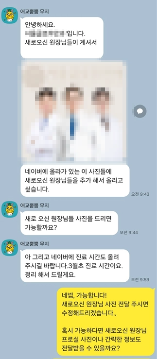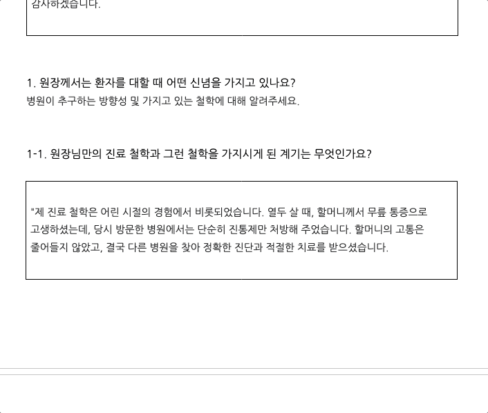 의료진의 사진과 텍스트 중심 콘텐츠만으로
