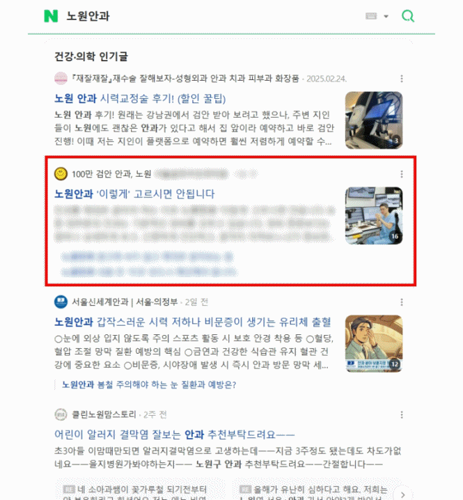 검색 결과 상단의 콘텐츠에 유입된 뒤
