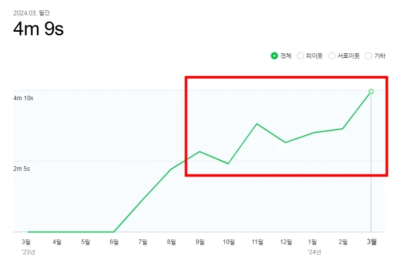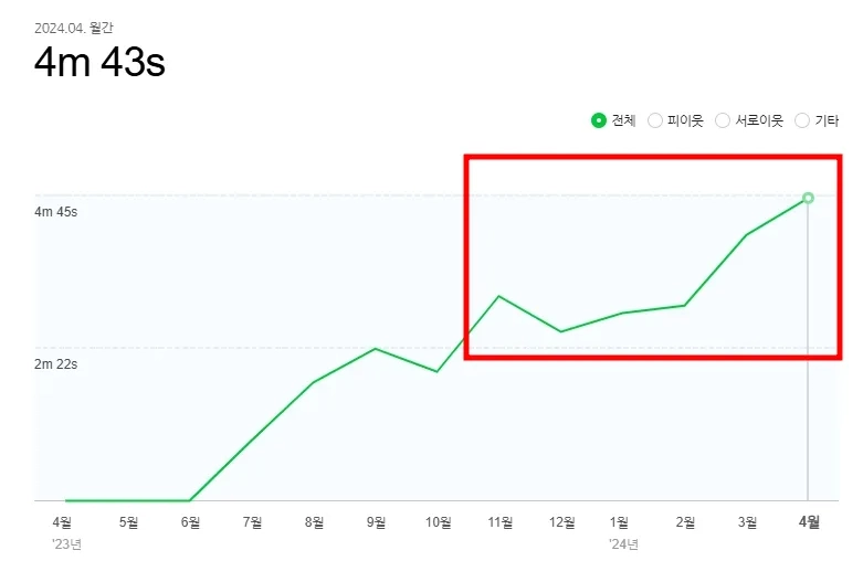 평균 체류시간 4분 이상을 만들어냈고