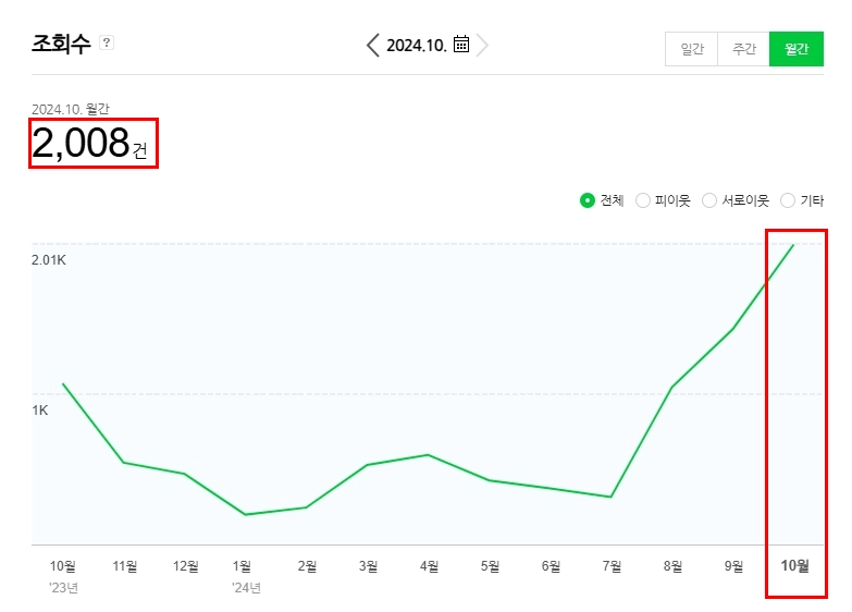 대행 전 한 달 조회수가 50건에도 미치지 못했던