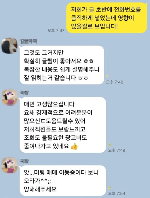 피드백을 반영한 콘텐츠로 브랜드 블로그 발행을 진행합니다.