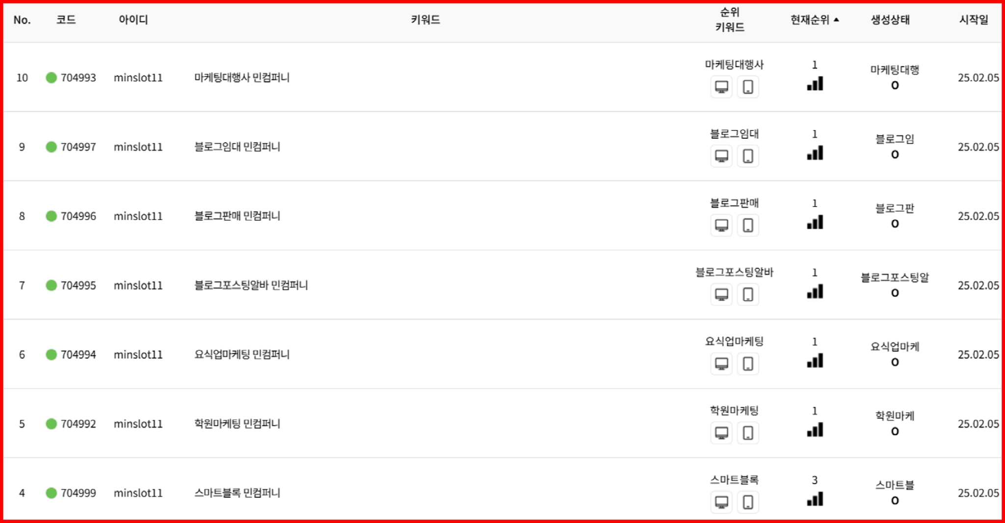 25일 상위노출 보장 상품 / 순위 누락 시 재작업 진행