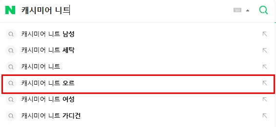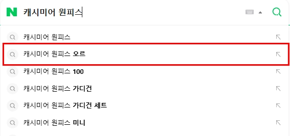 브랜드명 검색 시 다양한 유관 키워드가 자동 완성으로 노출되어
