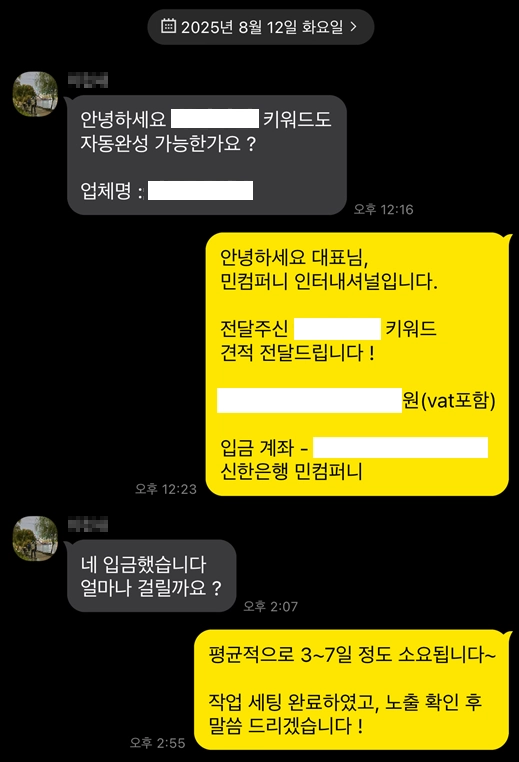 문의 시, 작업 희망 키워드를 말씀 주시면 보다 빠른 상담이 가능하오니, 참고 부탁드리겠습니다.